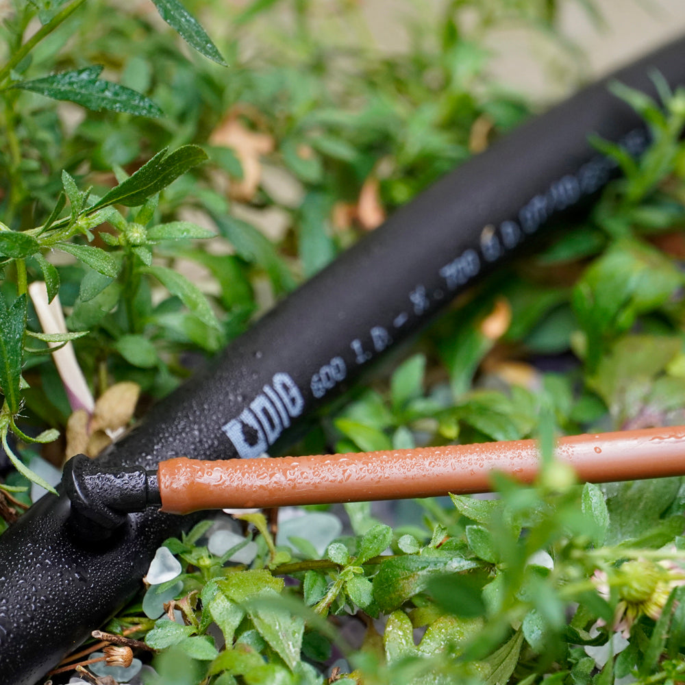 DIG’s 1/4″ Barbed Drip Fittings are designed for use with all brands of 1/4″ micro tubing, 1/4″ dripline, and 1/4″ soaker hose (with an internal diameter of .140 to .170 inches). These fittings create a tight-fit connection by being pushed into the tubing. They can be used to create two-way or three-way layouts with different tubing types and to attach micro tubing to 1/2″ or 3/4″ drip tubing. Made from high-impact plastic, these fittings feature the largest inside diameter in the industry, resulting in higher flow rates and lower head loss.