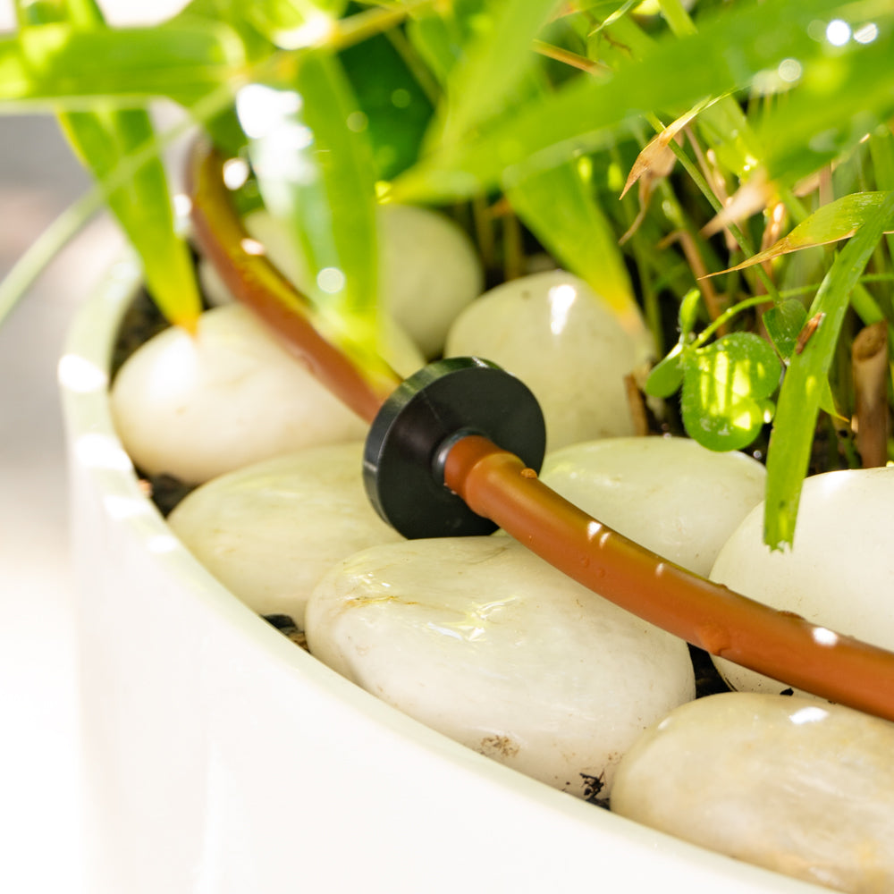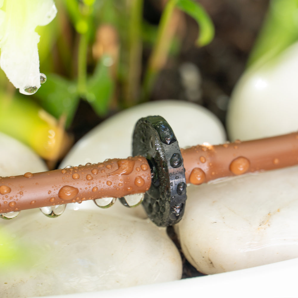 DIG Inline Drip Emitters offer flexibility and simplify the installation for residential drip irrigation systems. Their rate of flow depends on the inlet pressure; with higher pressure the flow will increase, with lower inlet pressure, it will decrease. The drip emitters’ nominal flow rate is 1 GPH at 15 PSI. These emitters are ideal for use with ¼” micro tubing as the main line in pots, baskets, planter boxes, vegetable gardens and for low-pressure gravity feed systems. Install the drip emitters “inline” as needed in any spacing with the 1/4″ micro tubing as the main line.