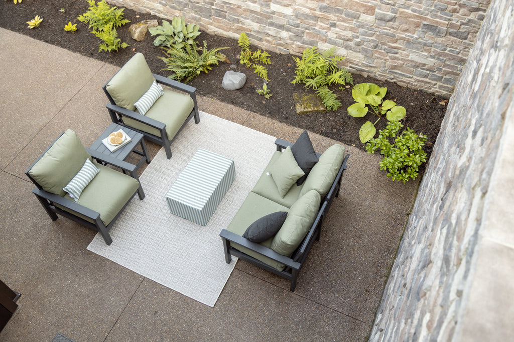 Cushions & Outdoor Fabric: Cleaning your cushions on a regular basis will help prevent build-up of dirt, which can generate mildew. Dirt and dust can be brushed off, and stains can be spot cleaned with mild soap and water; just rinse and allow the fabric to air dry. Cushion covers zip off and can be machine washed and air dried, do not put in the dryer. For tougher stains, visit the fabric manufacturer's website for additional recommendations. Tip: If your cushions are left out during a rainstorm, unzip and place the cushion on its side, zipper side down. This will allow the water to drain out quicker.