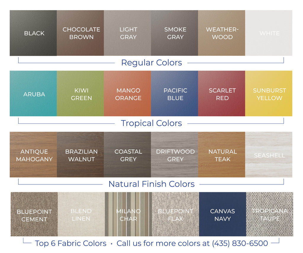 Classic meets contemporary. The Camden brings elegance and sophistication to any outdoor oasis. Available in Regular, Natural Finishes, and Tropical Colors: