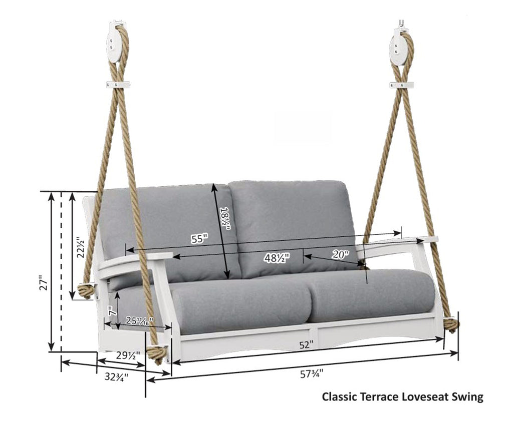 Indoor-Quality comfort meets outdoor-quality durability. Available in standard colors and natural finishes. Comes with 4 Rope Kit options in standard and natural finishes.