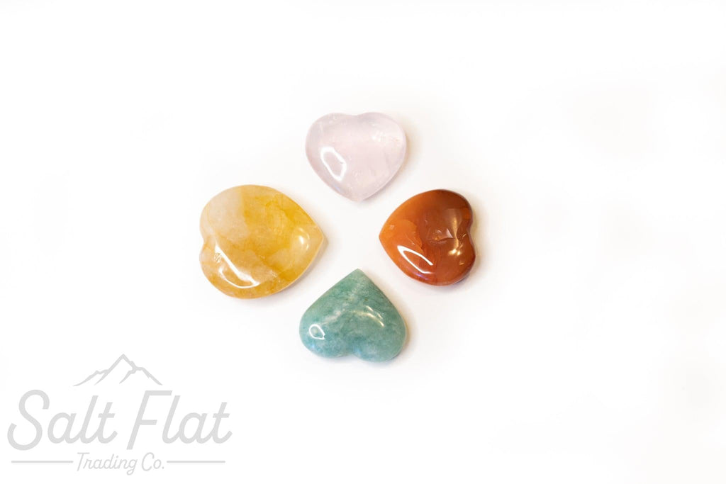 Heart shaped crystals are thought to attract loving energy as well as increase positive emotions. This mix of small crystal hearts are perfect for carrying with you every day to give you a boost of that same energy. Each bag includes one 1-2 cm heart of each of the following stones: