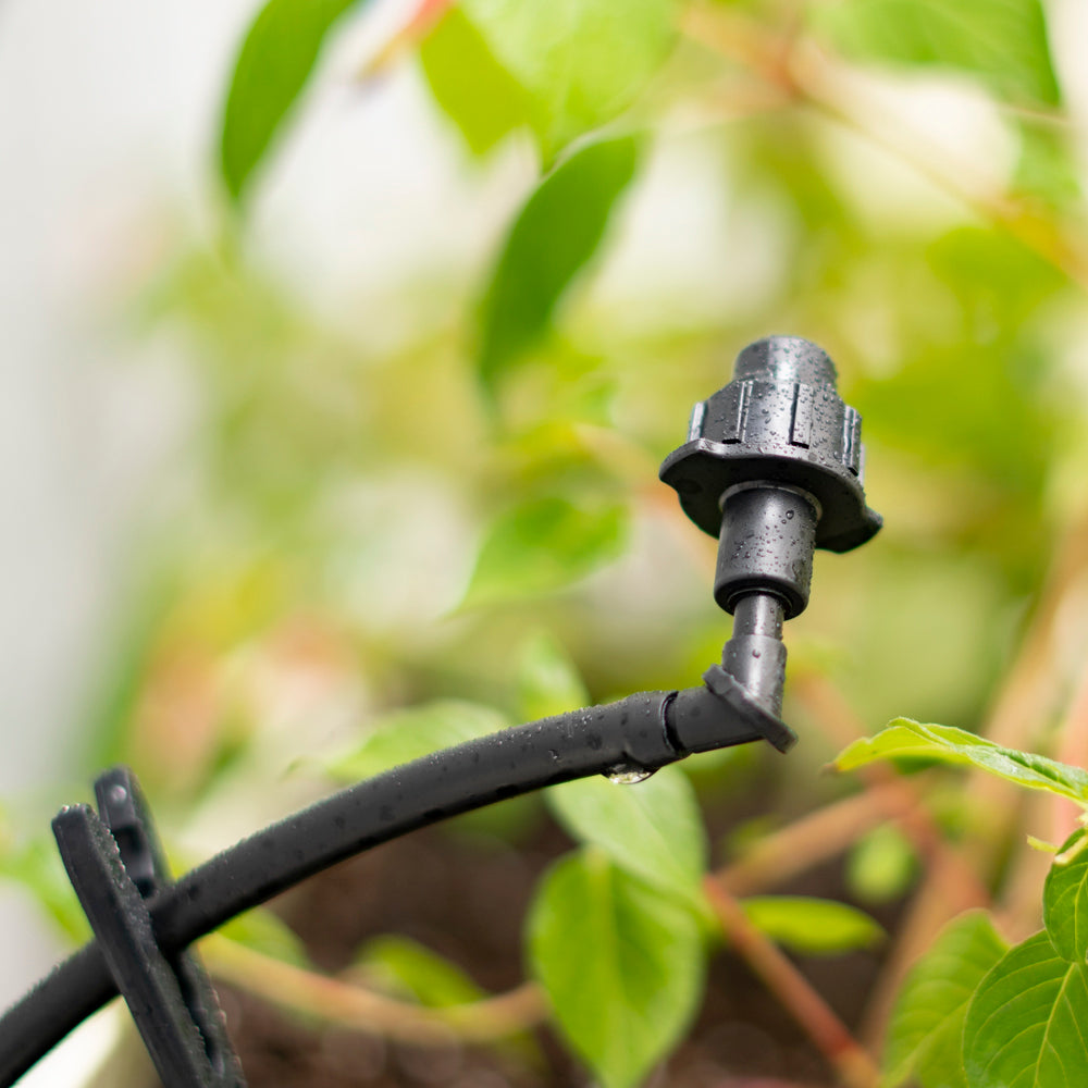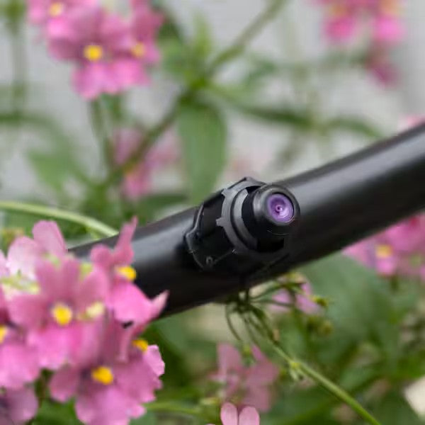 El nebulizador/aerosol de 360° de bajo caudal de DIG, con codo dentado en una estaca, es ideal para rociar o regar macetas y cestas colgantes. Su diseño de vórtice convierte las gotas de agua en una fina niebla, produciendo microgotas en un área de diámetro pequeño. El nebulizador/aerosol puede colocarse dentro de macetas y cestas de 20 a 60 cm de diámetro o usarse donde se recomienda regar o rociar por aspersión en cualquier tipo de planta, incluyendo vegetación que requiere humedad constante, con el nebulizador colgado boca abajo a una altura de entre 10 y 13 cm sobre la planta.