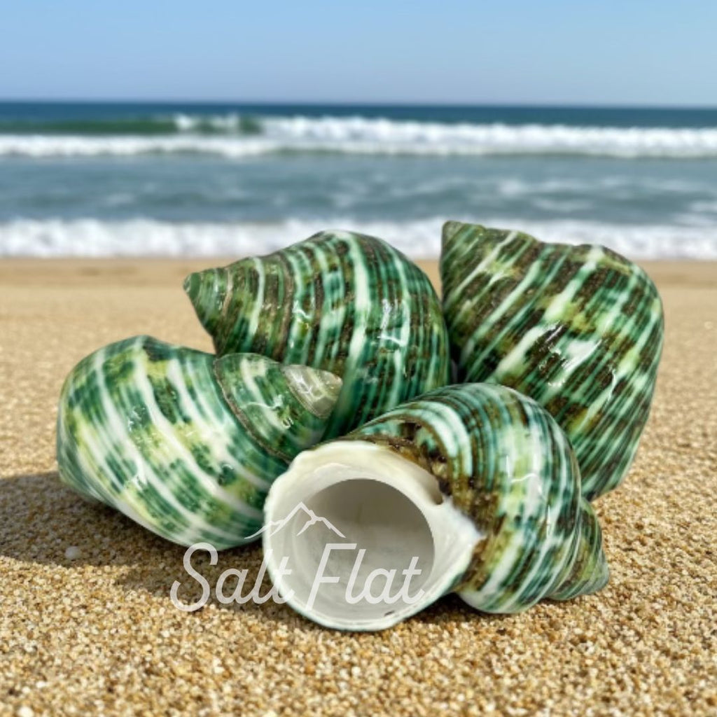 Discover the Tapestry Turbo, also known as a turban, once home to many sea snails. These shells can be found in oceans and tropical waters, making a unique addition to any shell collection or fish tank. They also make great homes for your pet hermit crab!
