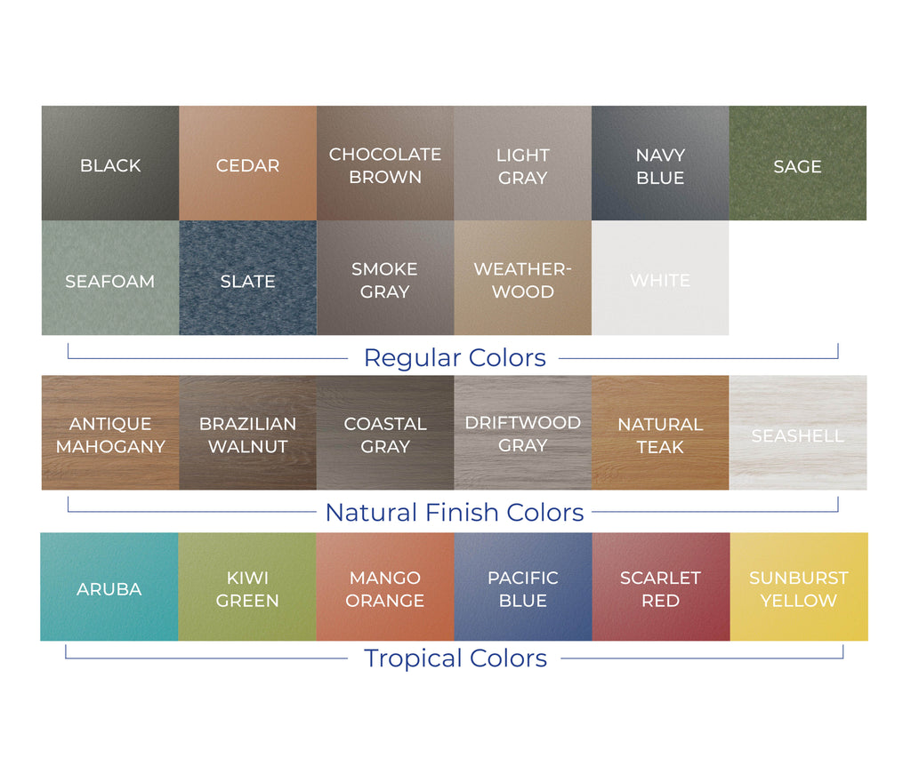 Indoor-Quality comfort meets outdoor-quality durability. Available in standard colors, tropical, and natural finishes, with three height options: