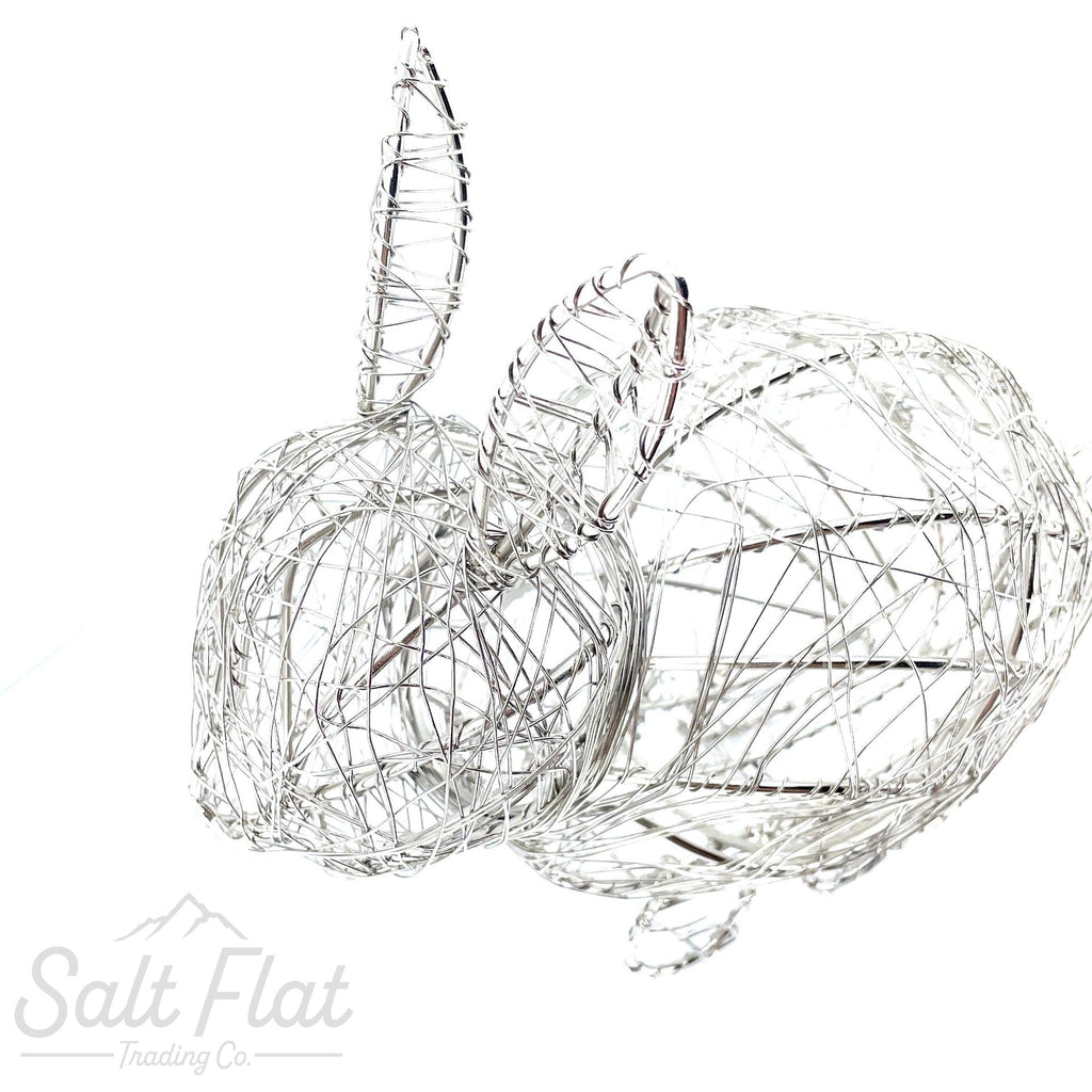 These sweet bunnies are hand wrapped by artisans in Uttar Pradesh, India. The frame is soldered for durability before wire is carefully wrapped around frame and coated in a protective layer.