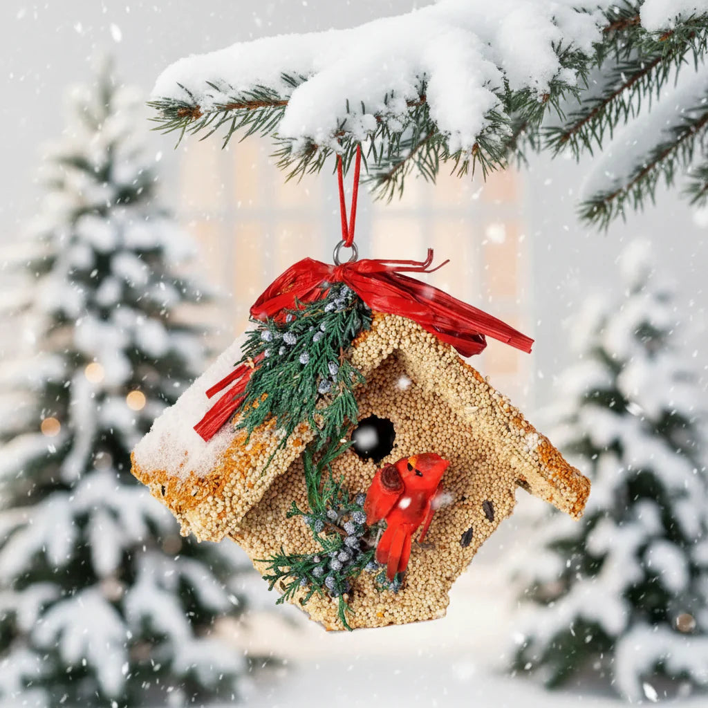 An exterior grade wooden wren house accented with juniper berries and a cardinal. A wonderful Christmas gift for anyone and a delightful treat for backyard birds. Once the seed is nibbled away the birds may nest in the box for years to come. The perfect gift and at a price for any budget.