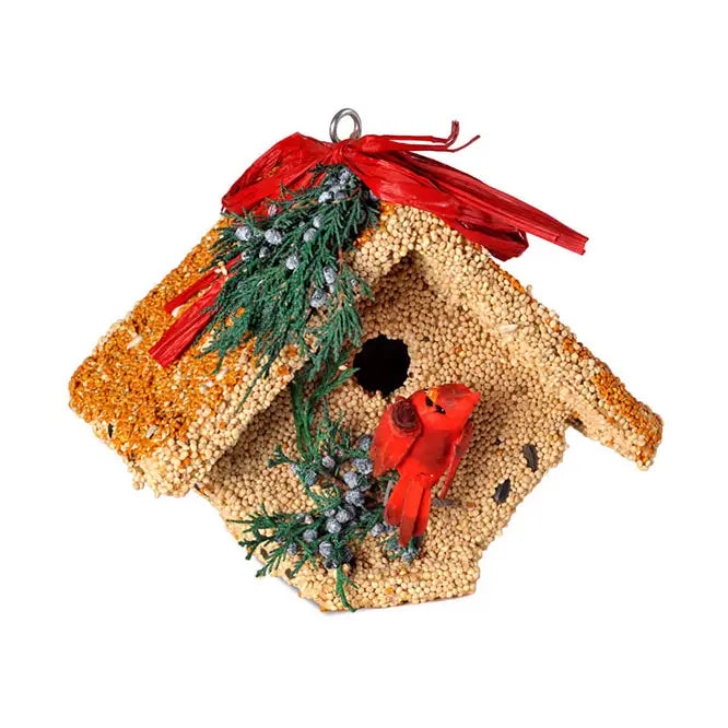 Instructions: for feeding hang the house from a tree limb or hanger near your favorite window so that you may enjoy the birds as they come to feed. As with all bird seeds, the best results will be obtained when protected from rain and squirrels.