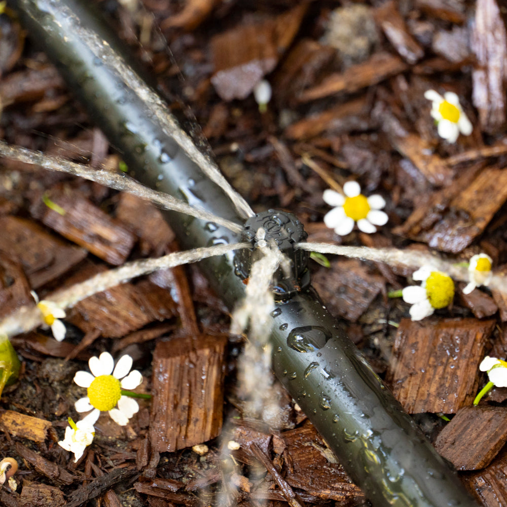 DIG’s Adjustable Stream Drip Emitters are available in 360° pattern and with 1/4” barb or 6” spike. The adjustable Stream Drip Emitters are designed to produce a very low flow to gentle stream pattern with an adjustable flow of up to 14.1 GPH and a diameter of up to 2.3’ at 25 PSI. The adjustable stream drip emitters have a rotating cap that allows for simultaneous control of the flow and the wetted area. These adjustable drip emitters offer a convenient way to water areas where conventional sprinkler systems are not practical.