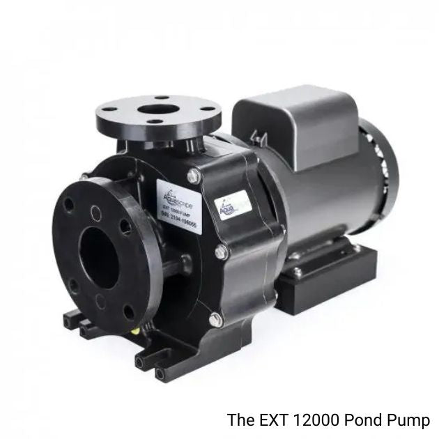 The EXT 12000 Pond Pump is ideal for water feature applications requiring high flow with high efficiency in a non-submersible style pump. This pumps oil-free, low RPM, fan-cooled motor provided quite operation and a long life. The EXT 12000 comes standard with a 10-foot, 115V power cord. If special electrical requirements are needed, the junction box on the pump motor allows for 115V or 230V electric to be customized on site to meet each project’s electrical requirements. Aquascape has made it easy to simplify the plumbing with the EXT Pump Plumbing Kit (#48027) sold separately. More Information: Oil-free, low RPM, motor provides quiet operation and a long life Totally Enclosed Fan-Cooled Motor (TEFC) Junction box located on pump motor allows 115V or 230V electric to be customized on site 3″ – 4 bolt flanged Inlet 2″ – 4 bolt flanged discharge Semi-closed vane impeller provides efficient water flow and can pass spherical solids up to .75″ in diameter The EXT 12000 comes standard with a 10-foot, 115V power cord. If special electrical requirements are needed the junction box on the pump motor allows for 115V or 230V electric to be customized on site to meet each project’s electrical requirements.