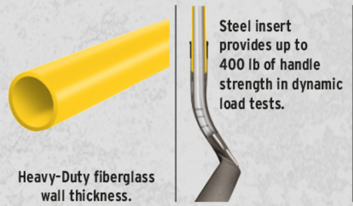 Sturdy 14 gauge round point blade, extended steps and a 48" fiberglass handle. Its long handle design provides leverage for effortless use.